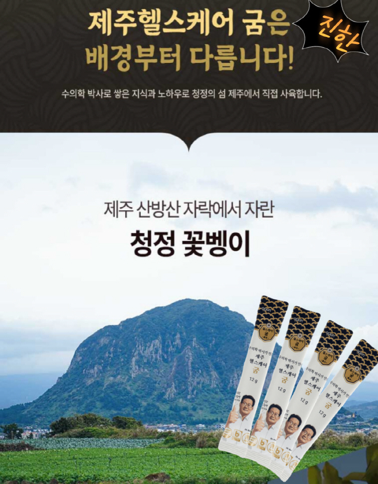 청정지역 제주 산방산에서 굼벵이를 사육하고 굼벵이를 이용한 상품을 제조 판매하고 있습니다